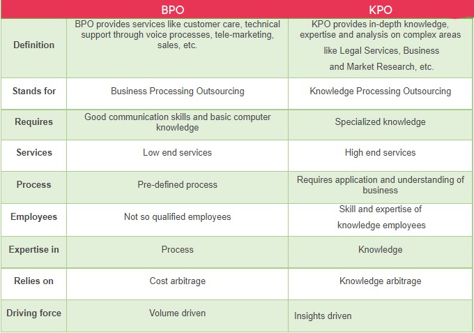 One thing should be remembered that KPO is only a lengthy adaptation of BPO. Throughout the time, it has been seen that with the extension of KPO, the BPO is losing its reality. Presently, the specialist co-op organizations give both BPO and KPO benefits at the same time to the association.